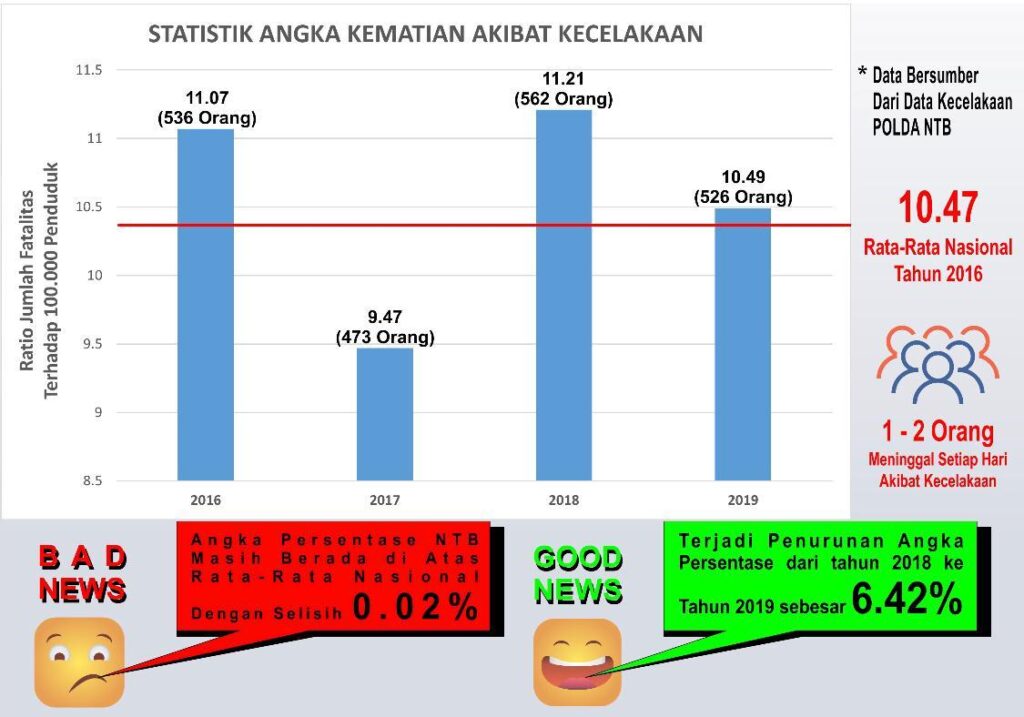 Kadishub Provinsi NTB, yang biasa dikenal dengan sebutan, Miq Bayu, menjelaskan bahwa “di musim pandemic Covid-19 ini, selain mentaati peraturan lalu lintas, kita juga harus menggunakan masker, cuci tangan, dan jaga jarak” terutama pada saat sebelum, saat sedang, dan setelah menggunakan kendaraan. Miq Bayu juga menambahkan, kecelakaan lalu lintas ini telah menyebabkan kematian, jumlah korban kecelakaan jauh lebih banyak daripada jumlah korban kematian akibat bencana alam gempa bumi yang terjadi di Provinsi NTB pada tahun 2018. Secara rinci, beliau menjelaskan, “bencana alam seperti gempa mungkin terjadi sekali dalam 50 tahun, sedangkan kecelakaan lalu lintas terjadi setiap hari”.