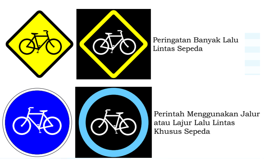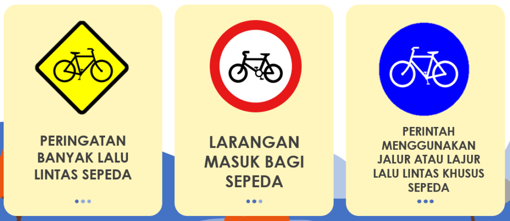 Rambu larangan, perintah dan peringatan untuk pesepeda yang perlu menjadi perhatian kita adalah berikut ini: